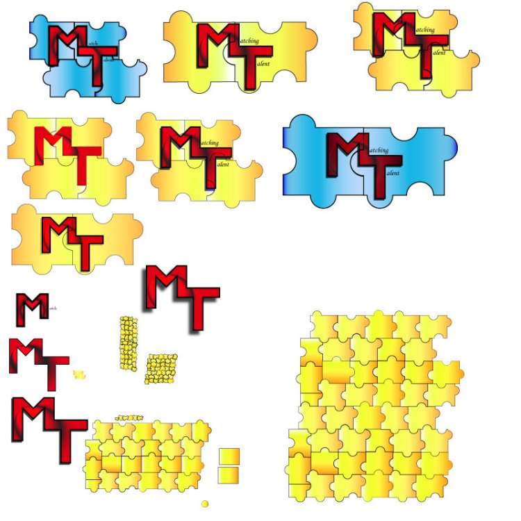 The puzzle pieces have been arranged ascending and rotating from the “i” in “Matching,” wrapping the “T” to the “M” in the logo.